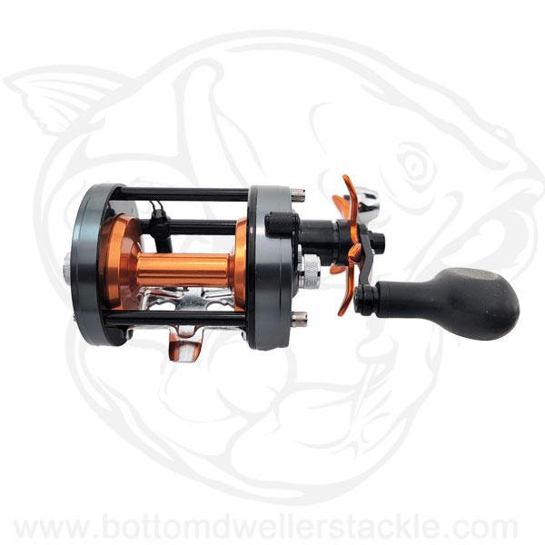Born from the C3 round reel platform, the Abu Garcia Catfish Special C3-7000CATSPC22 Round Baitcaster Gen 3 offers anglers a unique package backed with proven components. Performance starts with a 2 stainless steel ball bearings 1 roller bearing system and a smooth and consistent Carbon Matrix™ drag system. The 6 pin centrifugal brake delivers controlled casting while the extended bent handle with power knob gives anglers additional torque and power for hard pulling fish. The synchronized level wind system ensures even line lay and a smooth retrieve. Custom color and graphics.