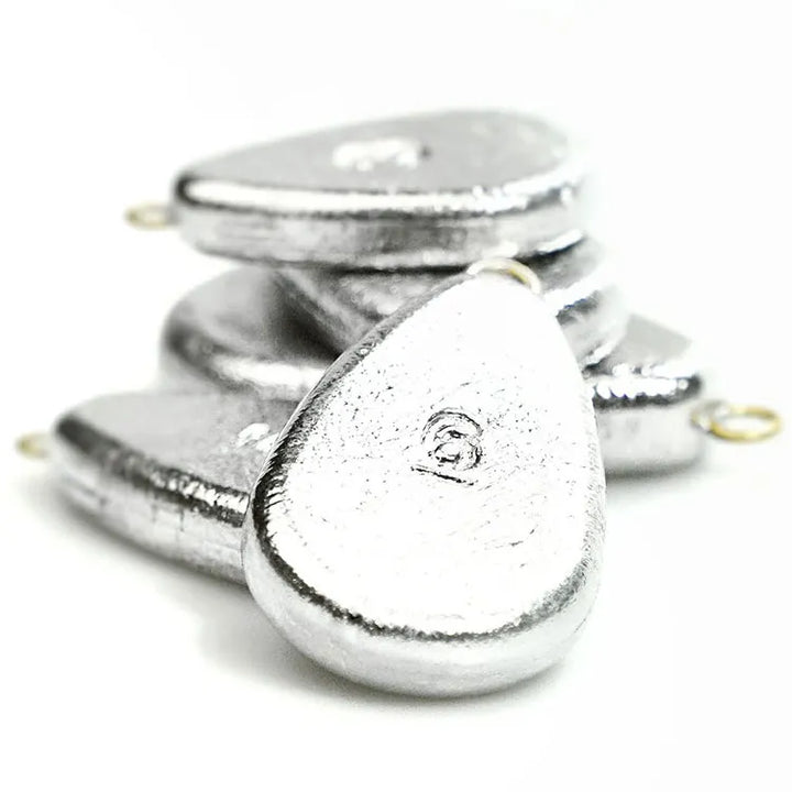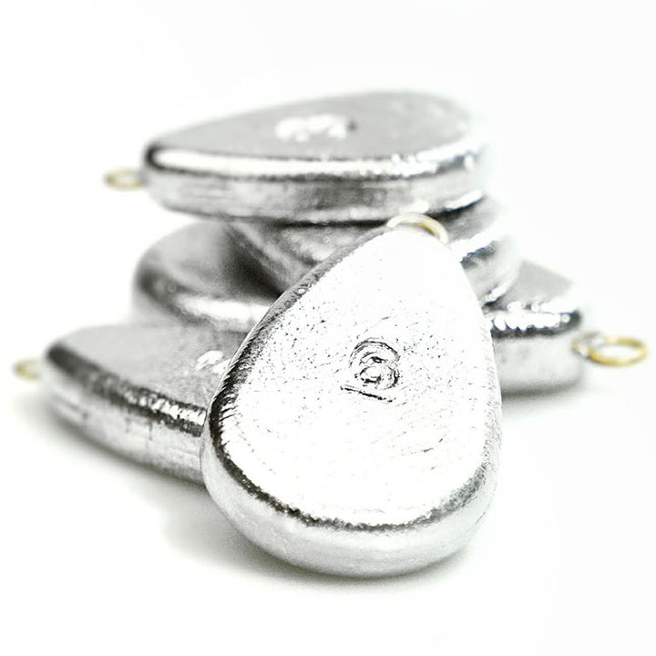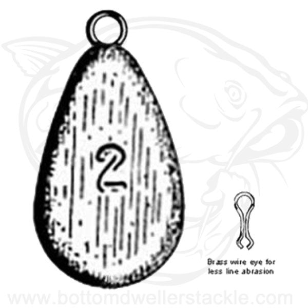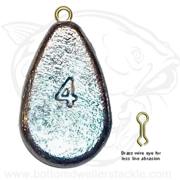 The addition of the brass eye allows you to use these sinkers with a snap, for example with a sinker slide. The sinker slide give you a quick change option for your weights without the need to cut your line. This also allows you to remove the weight all together when transporting your fishing rods, eliminating the sinker from beating against your fishing rods. The flat, low profile does not drift with the current, so your line stays in place.