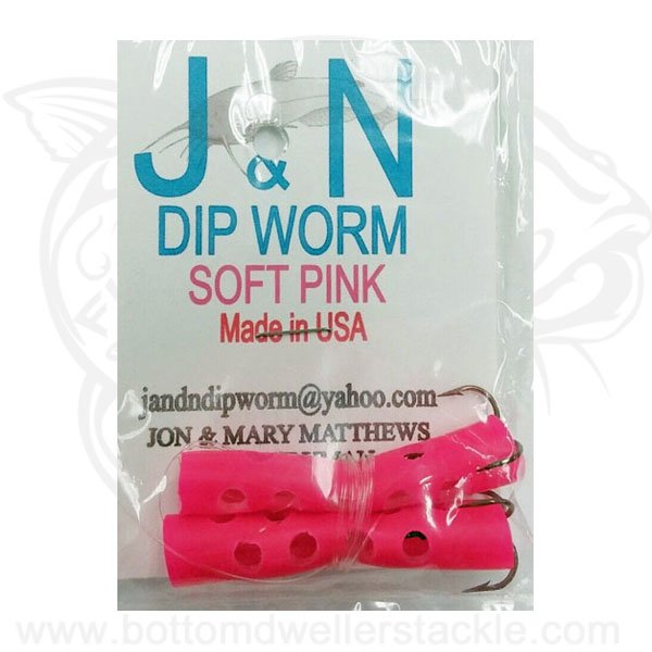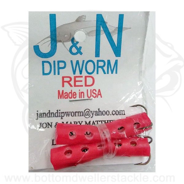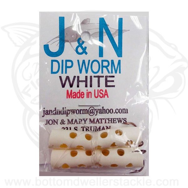 J&N dip worms are manufactured with the highest quality materials right here in the USA by Jim and Nancy Matthews in Chadwick, IL. The highest quality components go into making J&N Dip Worms including 20# test mono for superior abrasion resistance and super strong, extremely sharp VMC hooks for rock solid hook-ups. Choose your J&N dip worms with or without the sponge depending on your fishing style, conditions, or simply personal preference. Either style will work great with any dip style bait you choose to team them up with.
