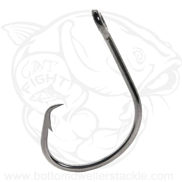The 1X strong wire Mustad Circle hook is a strong circle hook made for live bait to target bigger Catfish, Sailfish, Wahoo, Amberjack, Tuna, Permit or Striped Bass. The distinct curved shape of the circle hook will, when the fish takes the baited hook and swallows it, ensure that the hook travels to the corner of the mouth or lip, resulting in fewer deep-hooked fish. It is in other words, the ultimate Catch & Release hook. Setting the hook is more of a firm tightening of the line than an actual strike.