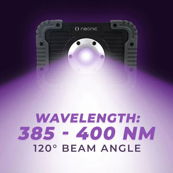 - Bright & Compact - This portable UV floodlight is built with a high powered COB LED. It has a half moon lens for maximum distance and brightness.