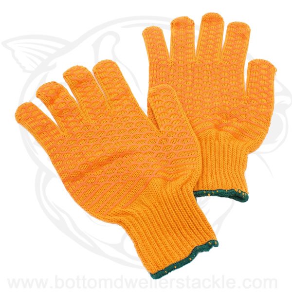 Made from heavy-duty woven cotton, the outside surface is reinforced with a checkerboard pattern of soft, adhesive "rubber" that gives you an incredible grip no matter how wet they get. Use them for everything from cutting bait to washing the boat and stop worrying about things slipping out of your wet hands. Machine washable.